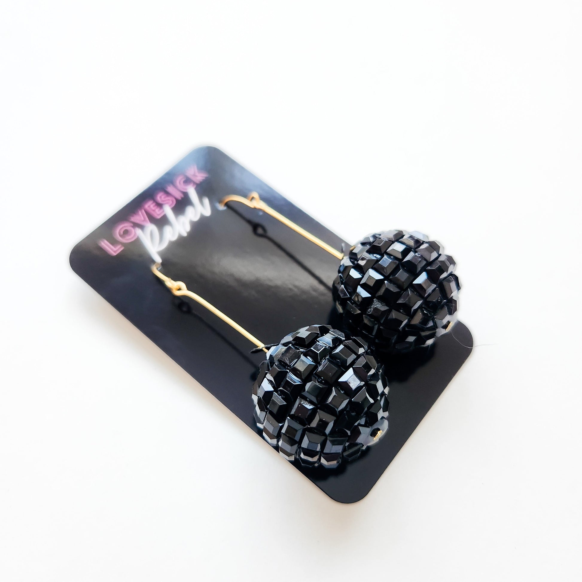 made with real rhinestones over a hand painted wood bead (zero Styrofoam is used for these earrings)