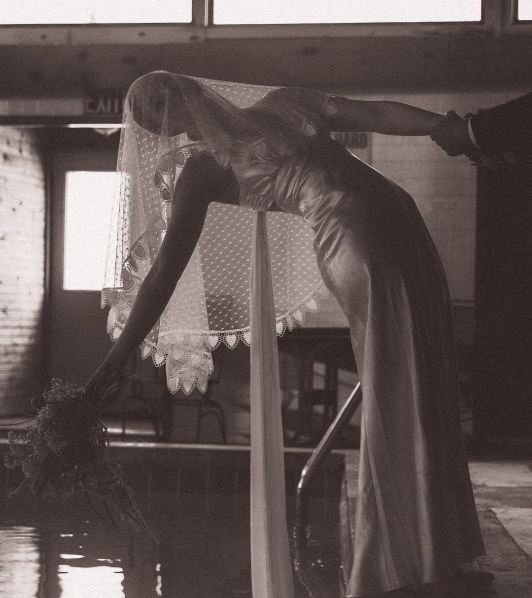 This blusher veil is for the vintage-loving bride. Made with the softest off-white English tulle with an embroidered-like pattern and then finished off with an adorable vintage-inspired lace heart trim.